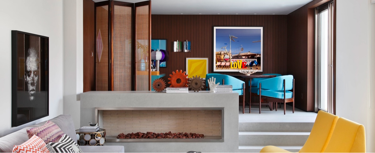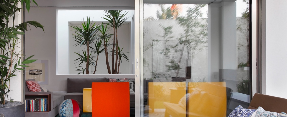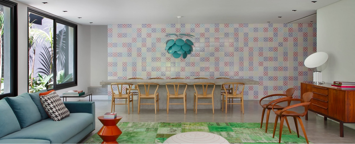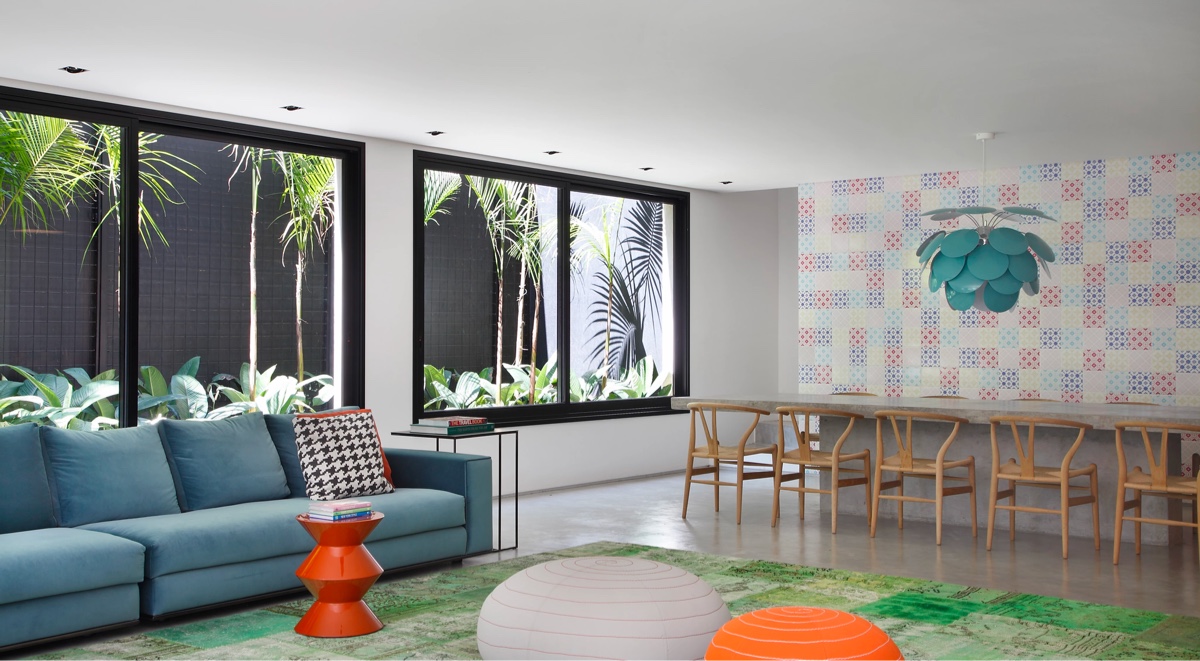 Цвета перетекают из произведений искусства в интерьеры этих домов в Сан-Паулу, сливаясь с акцентной мебелью, обивкой и декором. В то время как упор делается на художественные игрушки, статуэтки, современную скульптуру и настенное искусство, интерьеры сами по себе стали живыми шедеврами. Пламя горячих цветовых акцентов охлаждается сырым бетоном и деревянные шезлонг. Отрезвляющий серый фон препятствует тому, чтобы буйство многоцветия выглядело детским или цирковым, и привносит утонченную нить сплоченности. Каждый дом был мастерски спроектирован Гильерме Торресом, чтобы быть одновременно веселым и жестоким, молодежным, но структурированным. Макеты тщательно подобраны, чтобы каждый искусный элемент дизайна мог проявить себя в свое время.