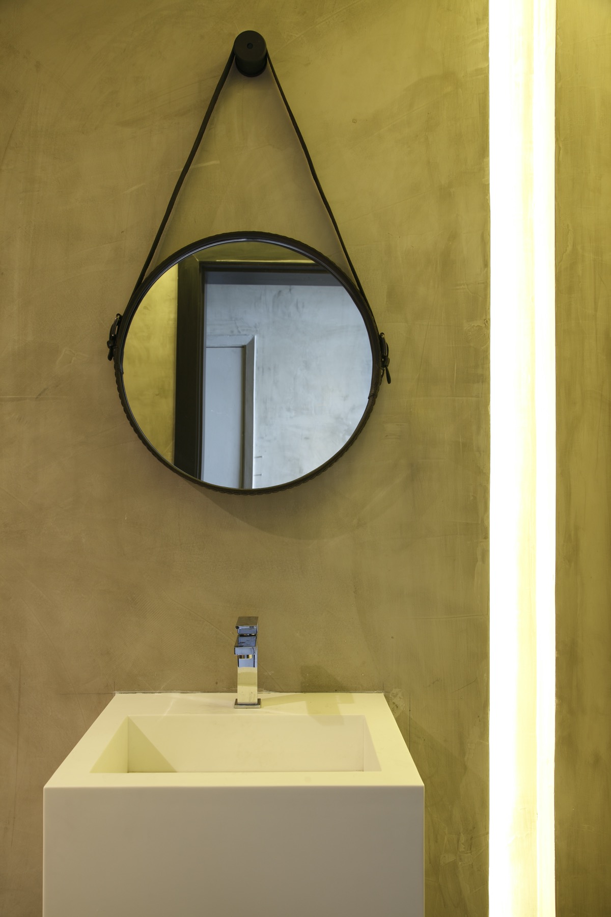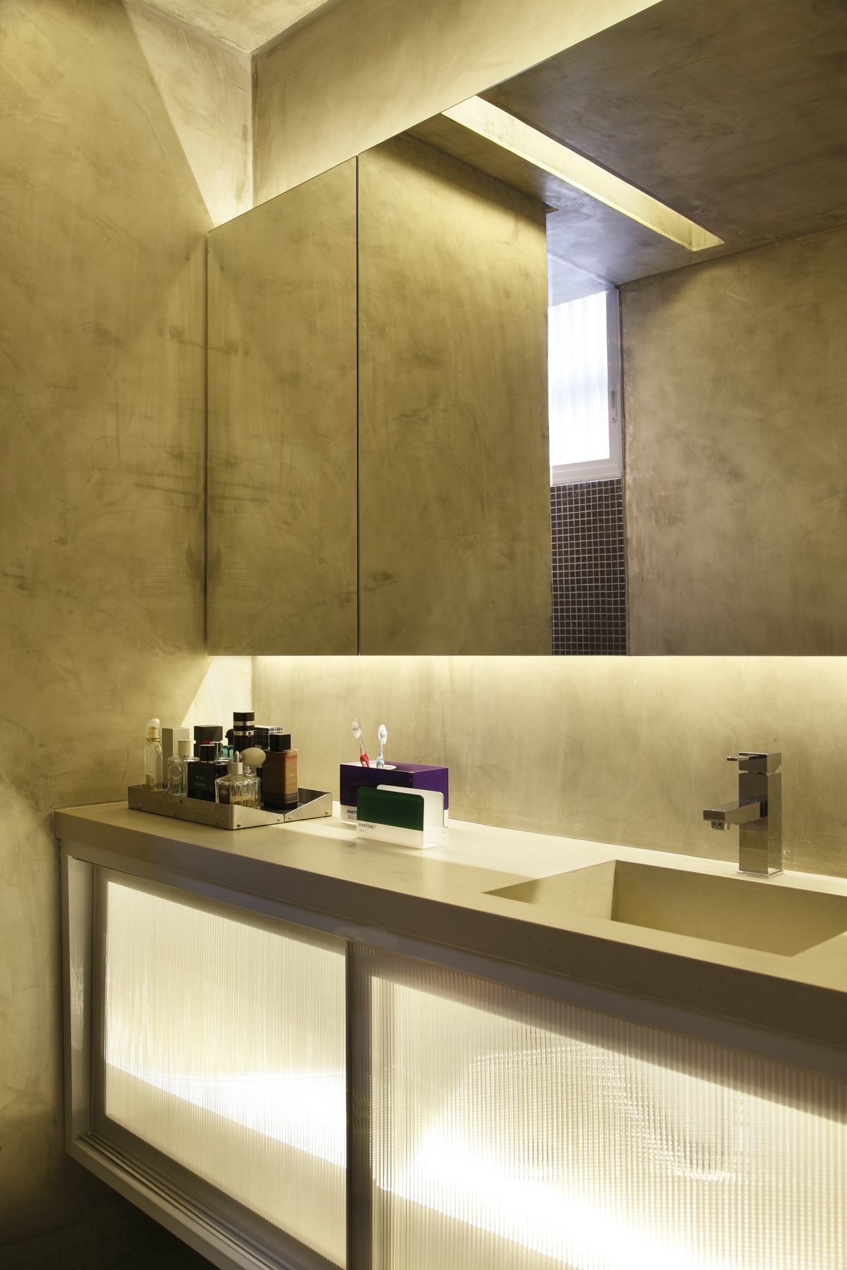 Еще одна световая полоса прорезает бетон, ярко горя зеркалом на стене.