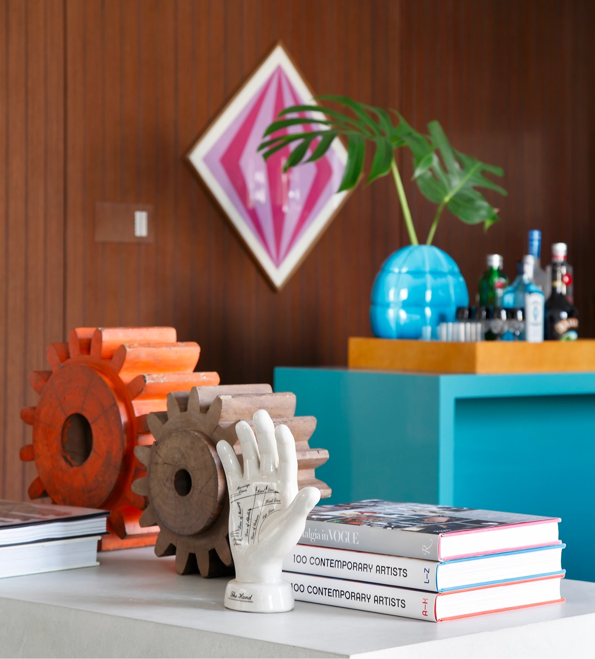 Наш последний тур — это дом площадью 400 квадратных метров, в котором используется оттенок темного дерева, чтобы закрепить причудливые произведения искусства и акцентные элементы.